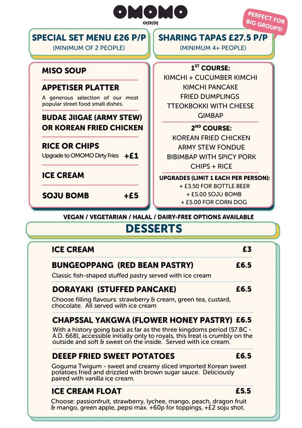We offer a good selection of wines, soju, cocktails, Korean and Japanese beers, mocktails, Korean specialty alcoholic drinks, soft drinks, hot drinks (including coffees and teas) and bubble-teas.